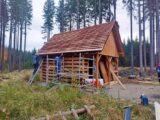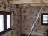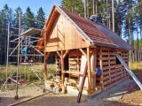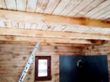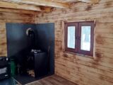 Kompletní výstavba – základová deska, dřevěná konstrukce. Střecha Ruukki Classic lesk.Interiér opalované dřevěné palubky, ošetřeny bezbarvým lakem.